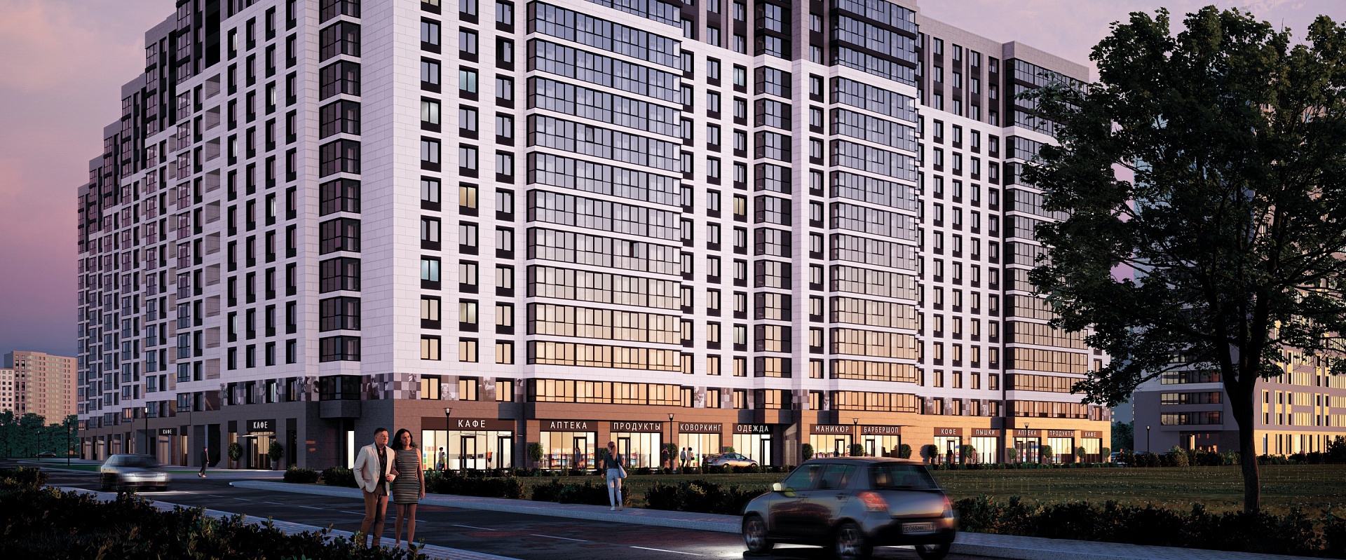 Новый жилой комплекс в Мурино. Продуманные планировки, подземный паркинг, коммерческие помещения, современные решения для семей и молодежи. Пешая доступность до метро, благоустроенные внутренние дворы.