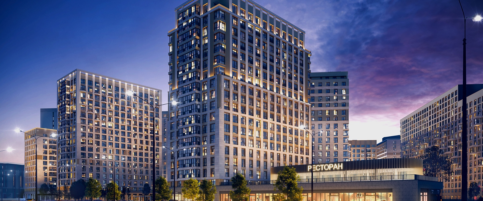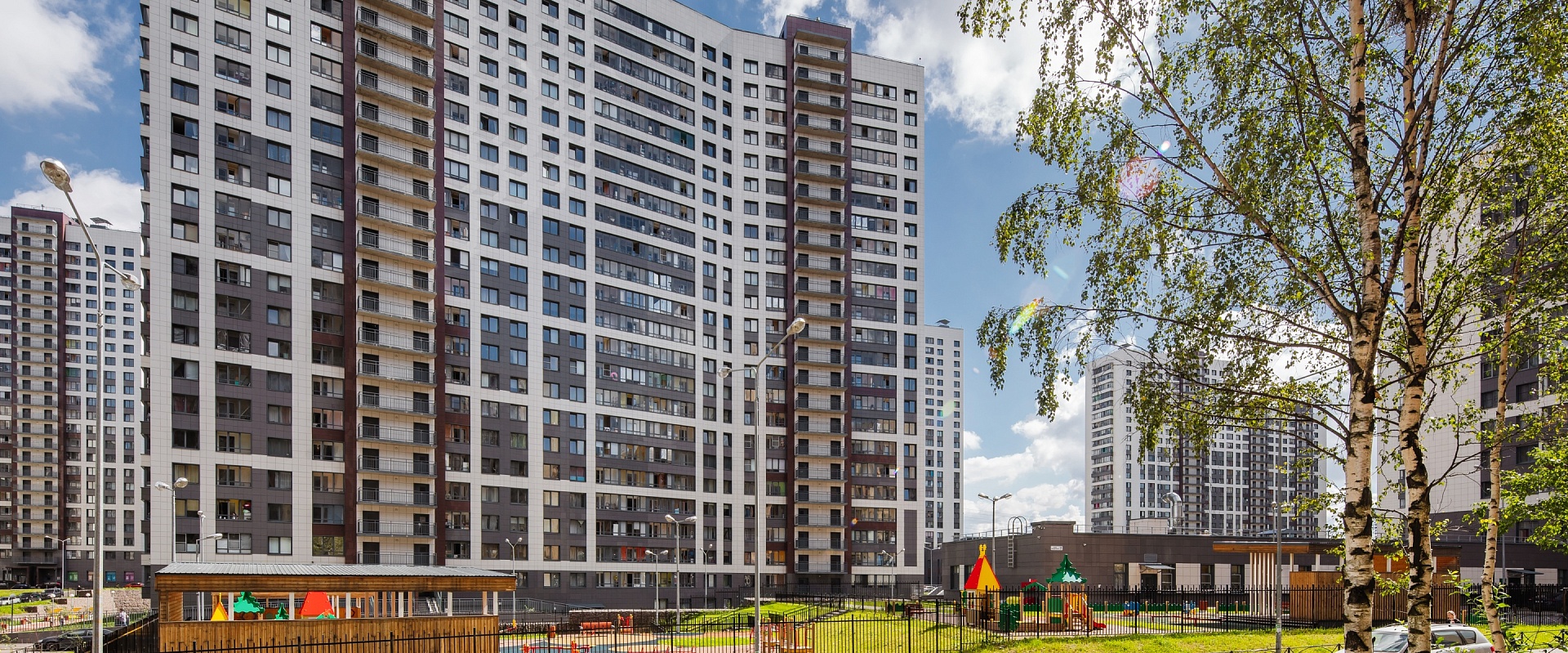 Жилой комплекс в Московском районе Санкт-Петербурга. Высотные корпуса до 22 этажей, закрытая благоустроенная территория, паркинг, коммерческие помещения на первых этажах, рядом парки, школы и магазины.